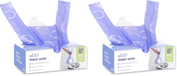Ubbi Diaper Sacks provide another great diapering solution for parents. These lavender scented bags are available in a 200 or 400 value pack and feature easy-to-tie tabs that make disposing of diapers at home, or on the go, much more convenient. About us: Ubbi is a globally recognized brand, designing innovative and creative products with parents and children in mind. Under the Ubbi name, you will find unique, quality products that are easy to use, and simplify parents' lives while keeping babies happy and safe as can be. Our steel, odor locking diaper pail was a first on the market in 2011, and has become our flagship item. With the same customer focused philosophy and innovative design capabilities, we have expanded into a variety of product categories: feeding, modern and trendy on-the-go items, bath toys and functional accessories. From concept to final creation, the Ubbi team works together every step of the way to bring the best in design and value.