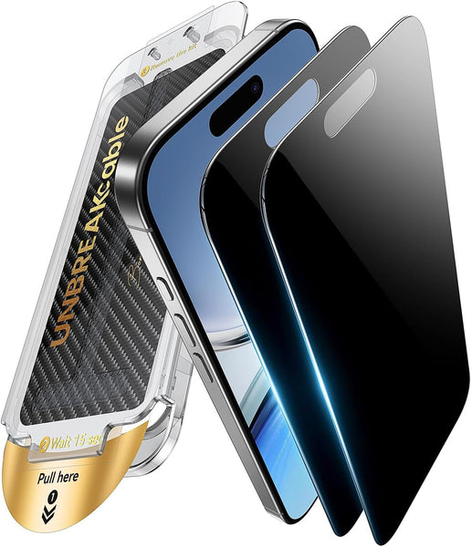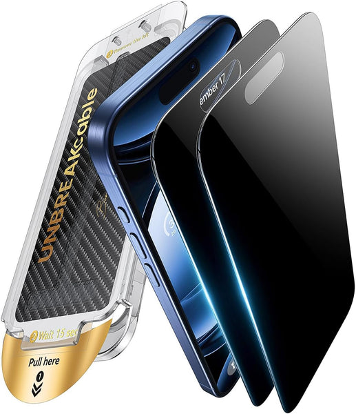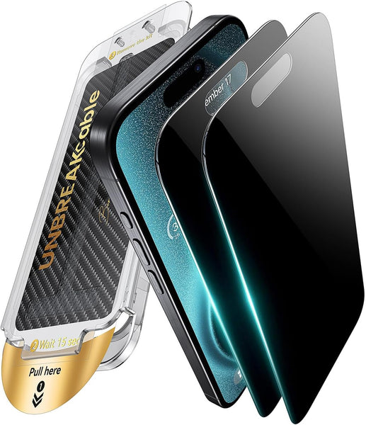 | whats in the box | 1 Squeezer tool for perfect application, 2 DustProof OneStep Installation Kit with auto-dust, bubble-free, and auto-position features, 2 Privacy Screen protector for iPhone 16 Pro Max, Cleaning Kit with: 1 Lint-free Cloth, 3 Dust Absorber, 3 Wet Wipes, 6 Dust Removal Sticker |