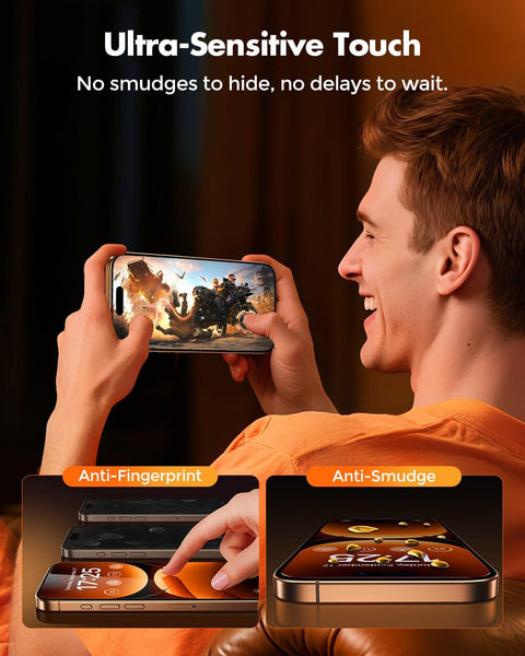- 【100% Naked-Screen Feel】 Crystal-Clear BareGlass Technology delivers 99.99% HD transparency with 0.01ms touch response – verified 25% faster than standard films, making your iphone 16 Pro Max privacy screen protector feel like no screen is there. Nano-oleophobic coating actively repels fingerprints and grease 50% longer. Keep your iphone's original vibrant colors and swipe like there's nothing there