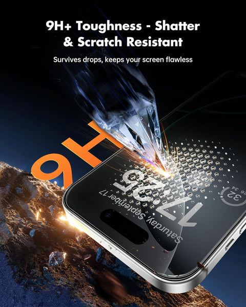 - [Military-Grade 9H+ Hardness for Superior Protection] Made with aerospace-grade high-aluminosilicate glass and heat-treated for 4 hours at 400°C, our tempered glass delivers unmatched scratch resistance and impact protection.