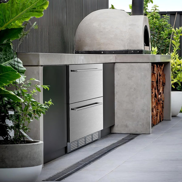 - 【Durable & Stable】Our fridge drawer is made of outdoor-grade 304 stainless steel, which, together with the highly airtight and wear-resistant door seals inside the case, provide stable cooling even in extreme weather. In addition, the beverage fridge use a 360° three-dimensional air duct design to maintain even cooling of ingredients while delivering a frost-free experience. Its structure uses microcellular high-pressure one-piece foaming technology to effectively minimize temperature fluctuations