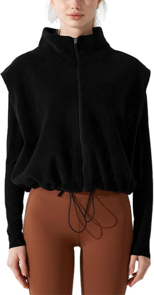 Unilexi Womens Full Zip Fleece Vest Stand Collar Sherpa Crop Sleeveless Coat Zipper Fitness Vest