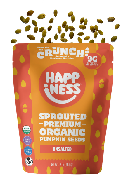 Our Unsalted Pumpkin Seeds are rich and nutty with a light and crunchy texture, sprouted and dehydrated to activate and maximize their naturally available nutrition. This benefits your stomach microbiome and overall gut health, because a happier gut makes a happier you!