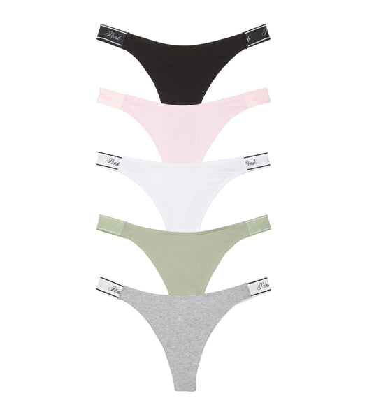 - This mid rise thong underwear pack features an elastic waistband that moves with you.