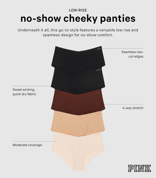 Victoria's Secret PINK No Show Lace Cheekster Panty Pack, Underwear for Women (XS-XXL)
