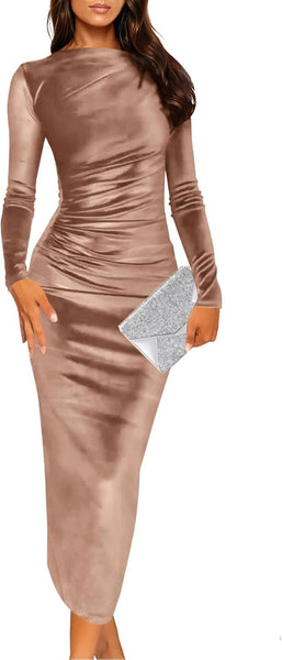 - Features: Velvet, bodycon, long sleeve, side ruched, back zipper, solid color, midi dress. Elegant and fashionable party dress.