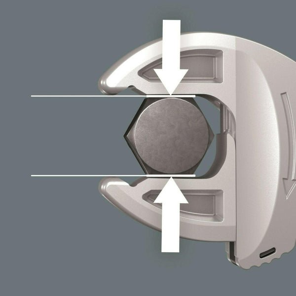 Many users wish to have a universal screwdriving tool with the widest possible range of applications. It should be a single tool for multiple metric and imperial dimensions. It should automatically adjust to the different screw sizes. It should be safe to grab without damaging anything and allow for a high working speed. The continuous and parallel jaws replace several single spanner dimensions. The required size is automatically and continuously set when attaching the tool to the hexagon bolt or screw. The integrated lever mechanism securely clamps the hexagon screw or bolt between the jaws, which significantly reduces the risk of slipping or damage. The ratchet function ensures fast and consistent screwdriving without removing the tool. Thanks to the corner-width rectangular prisms, a back-pivoting angle of only 30° can be realized. The single-arm design in conjunction with the ratchet function and the corner-width prism make it possible to work even in confined spaces. The adjustable Joker 6004 is the universal screwdriving tool. Self-setting. Gripping. Spanning.