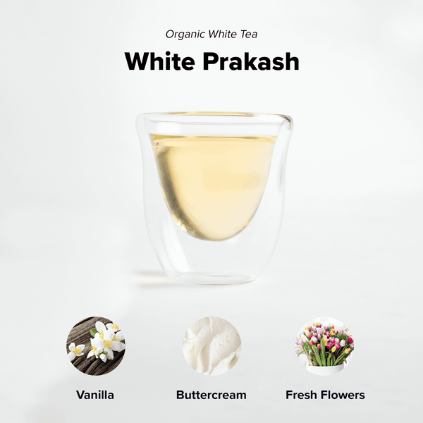 An award-winning gem and Global Tea Championship Bronze Medal winner, White Prakash is a luxurious Himalayan white tea offering velvety floral notes, hints of vanilla, spring blossoms, muscatel, and a buttery smooth finish.