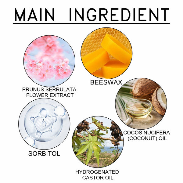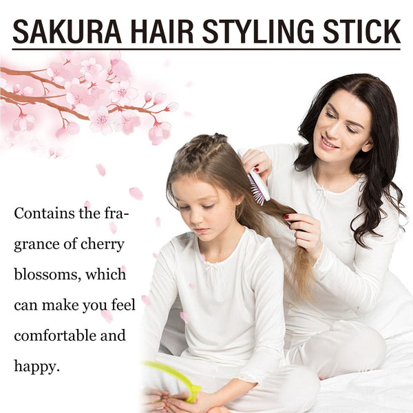 Cherry blossom hair stick contains beeswax, cherry blossom extract, sorbitol. It can help to style your hair and keep you looking beautiful all day long. The way to use it is simple: brush your hair, apply the product directly to your hair, and comb through your hairstyle. And style your hair.