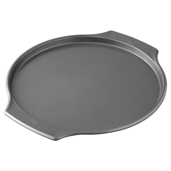 Forget takeout! Make your own homemade pizzas with this Wilton Bake it Better Steel Non-Stick Pizza Pan. Whether homemade or frozen, your slices will slide right off this convenient 16-inch pan. This pizza pan offers better heating, better handling and better release. Constructed of durable heavyweight steel, this pan offers dependable, even heating throughout the years. The ergonomic handles are easier and safer to hold time after time and the long-lasting non-stick coating makes serving and cleanup easy throughout continued use. Use the pizza pan 16 inch with your favorite homemade or store-bought pizza, or bake up a sweet dessert pizza for family night.