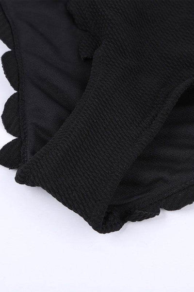 Theone-shoulder design with scalloped edges adds a trendy touch to this classicbikini style