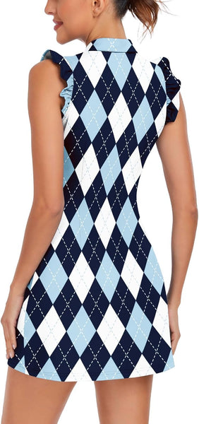 - [ Polo Golf Dresses For Women ] This colorful chic golf dress features a polo collar design with buttons closure, adding a touch of elegance to your golf ensemble. The breathable and stretchy fabric ensures freedom of movement on the golf course while keeping you cool and comfortable throughout your game. With a flattering silhouette and stylish details, this polo golf dress is a must-have for any female golfer looking to tee off in style.