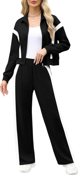- ✦Design:This stylish two piece set features a full-zip,long sleeve sweatshirt paired with wide leg sweatpants,both equipped with convenient pockets.It's available in classic solid colors or unique patchwork designs.