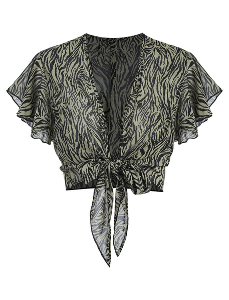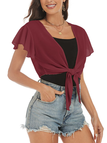 ZAFUL Women's Chiffon Cropped Bolero Sheer Shrugs for Dress Short Sleeve Tie Front Cardigan