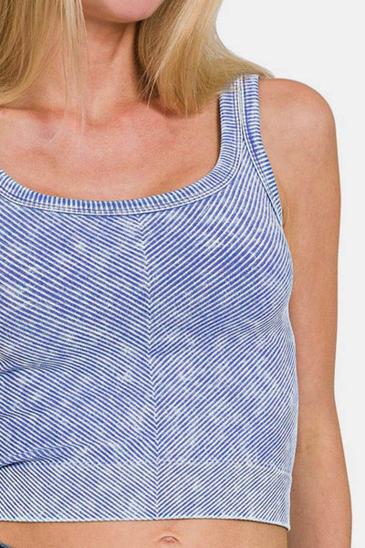 The Washed Ribbed Scoop Neck Wide Strap Tank is a versatile and essential piece for your wardrobe. Crafted from washed ribbed fabric, this tank top offers a soft and textured feel for added comfort. The scoop neckline and wide straps create a chic and flattering silhouette, suitable for layering or wearing on its own. The washed ribbed detailing adds a touch of casual sophistication, making it perfect for everyday wear or for dressing up with accessories. Elevate your outfit with this stylish and versatile tank top that can be paired with a variety of bottoms for a range of looks.