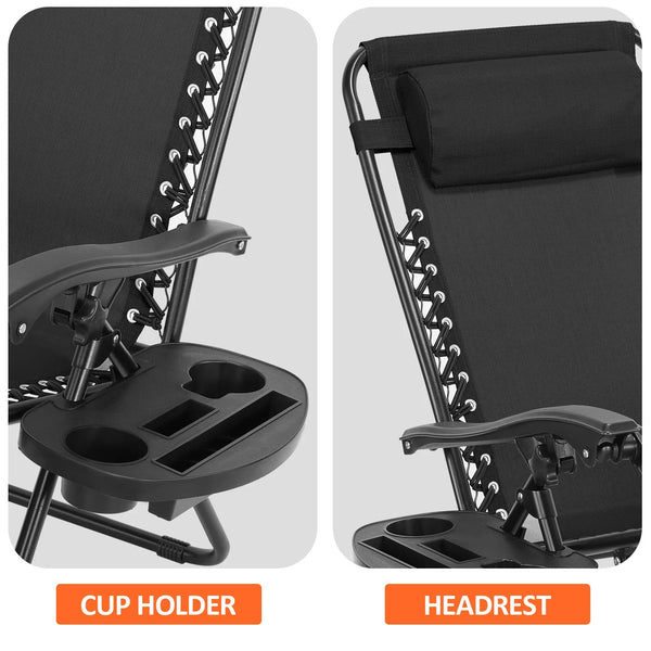 Zero Gravity Chair Patio Recliner Chair Set of 2 Folding Camping Chairs with Cup Holder Adjustable Headrest Reclining Lounge Chair for Poolside Backyard and Beach (Black)