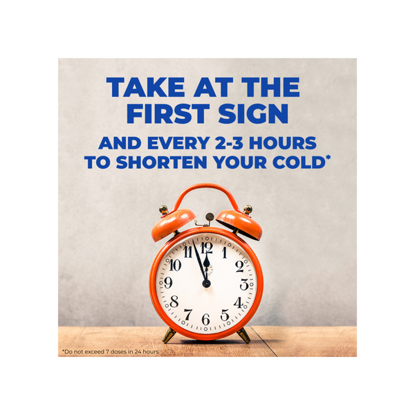 A: Begin at the very first sign of a cold for best results. Continue as directed on the label.